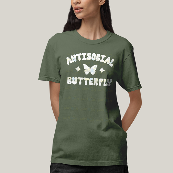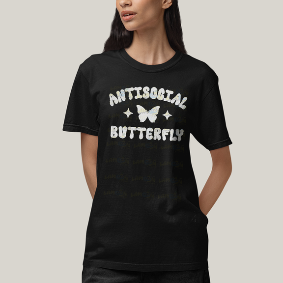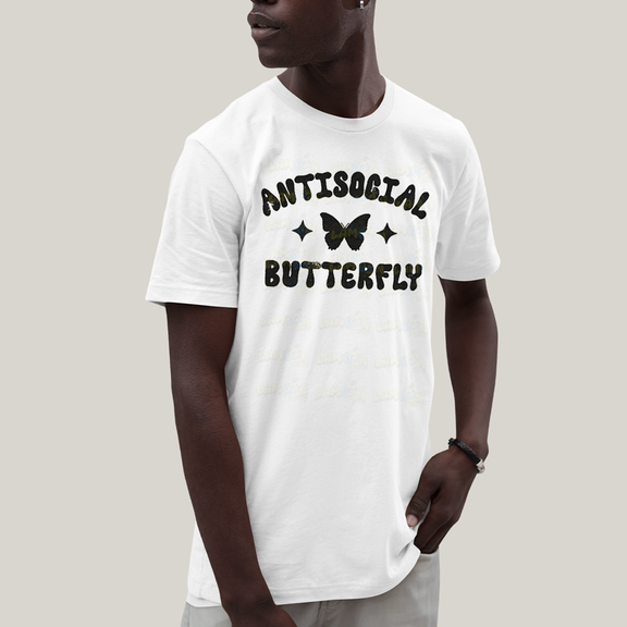 Camiseta Algodão Unissex T shirt Antisocial Butterfly