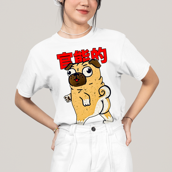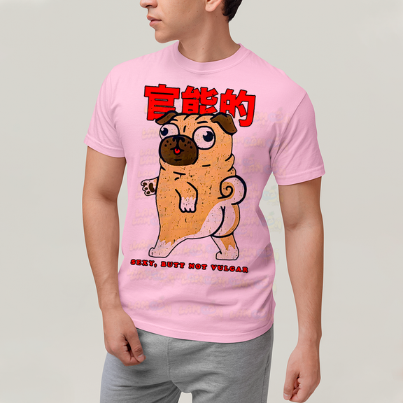 Camiseta Algodão Unissex T shirt - Cachorro Meme pug sexy, butt not vulgar