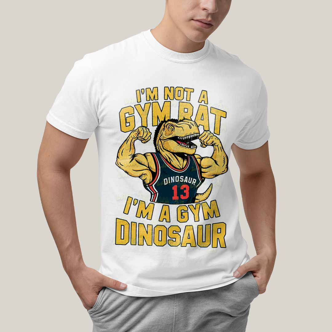 Camiseta Algodão Unissex T shirt Dinossauro Gym academia gym rat dinosaur