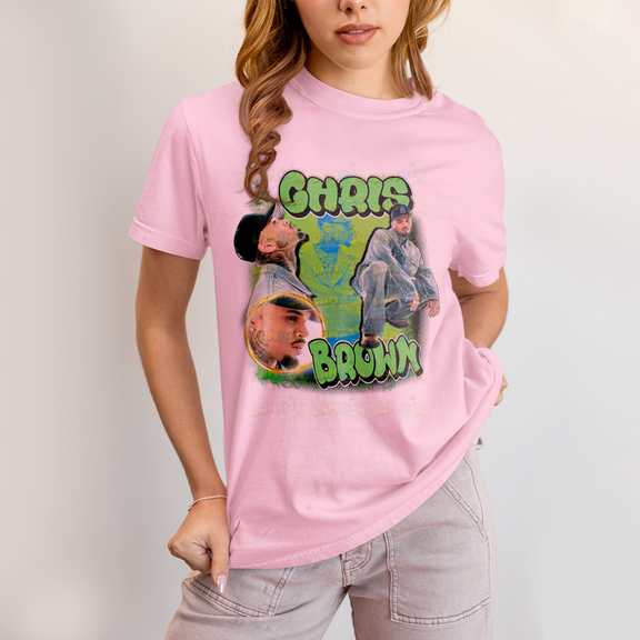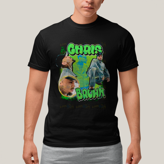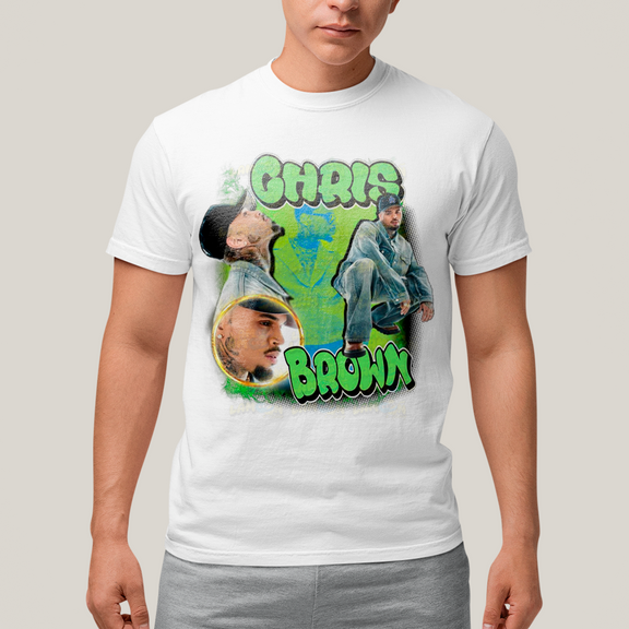 Camiseta Algodão Unissex T shirt Graphic Tee Chris Brown Verde