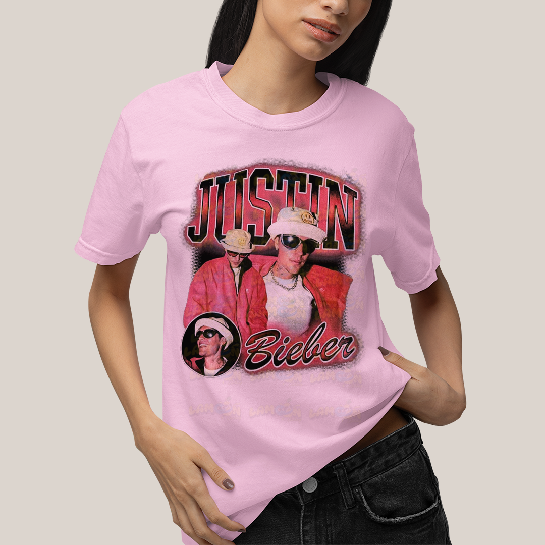 Camiseta Algodão Unissex T shirt Graphic Tee Justin Bieber Vermelho