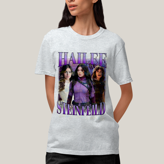 Camiseta Algodão Unissex T shirt - Hailee Steinfield Atriz Roxo Gavião Arqueiro