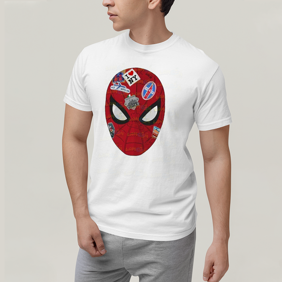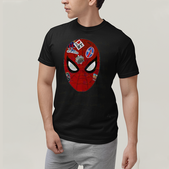Camiseta Algodão Unissex T shirt Homem Aranha Rosto Figurinhas