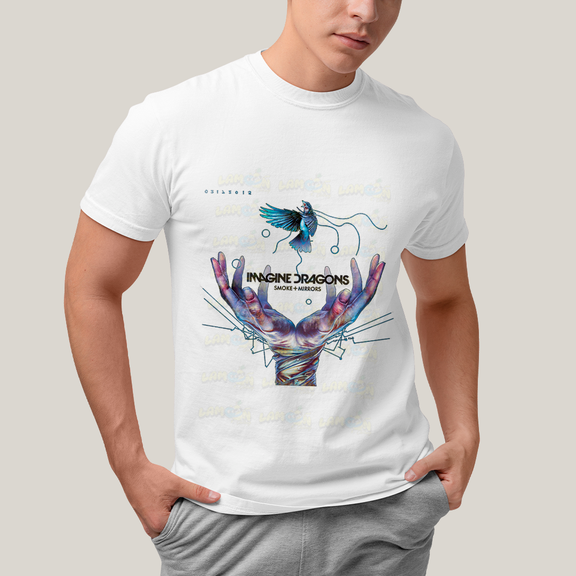 Camiseta Algodão Unissex T shirt - Imagine Dragons Smoke e Mirrors Azul passaro maos