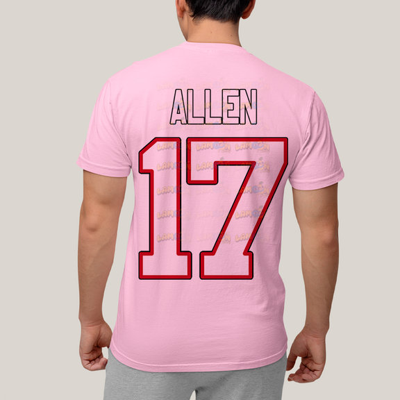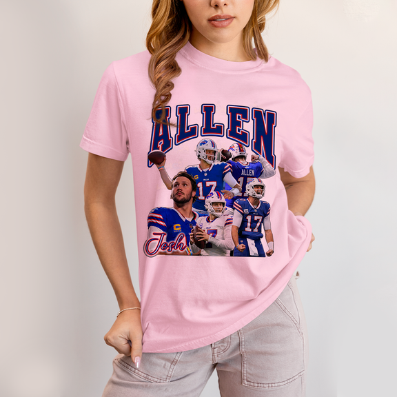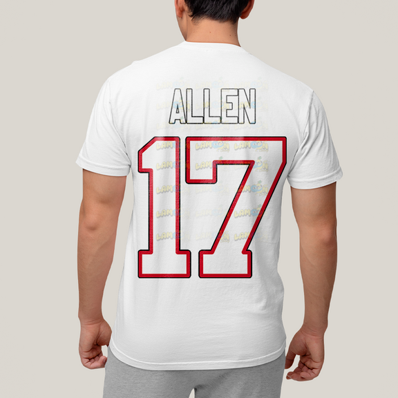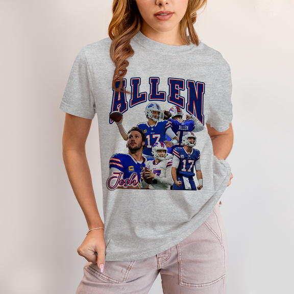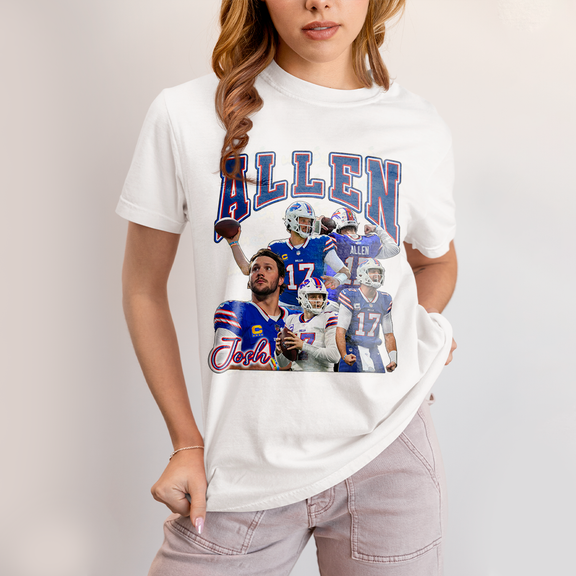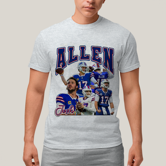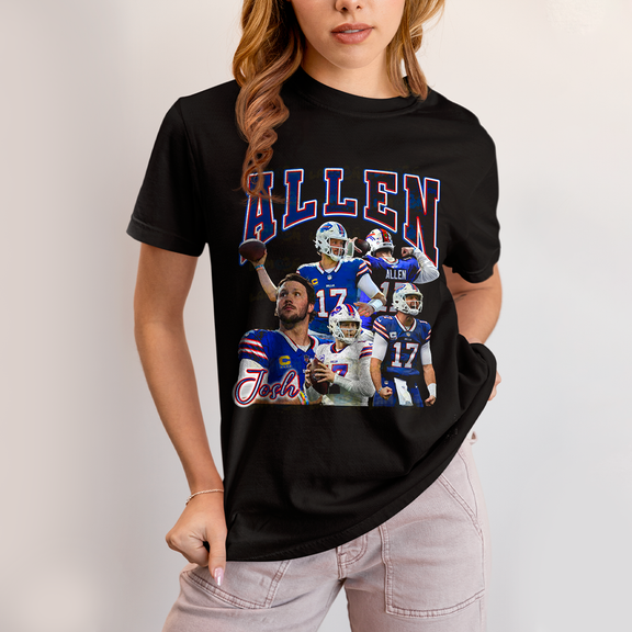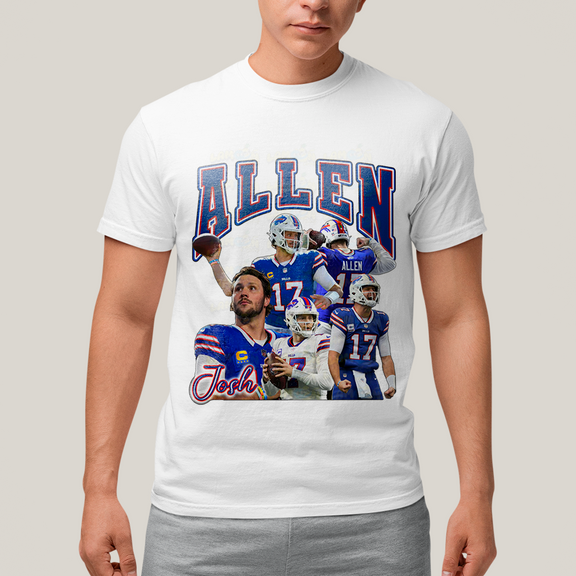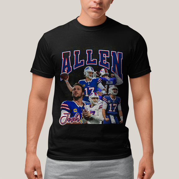 Camiseta Algodão Unissex T shirt -Josh Allen 17 Jogador de Futebol Americano FC