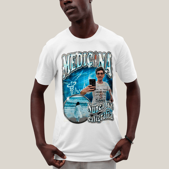 Camiseta Algodão Unissex T shirt- Medicina Nunca Fiz Caligrafia-