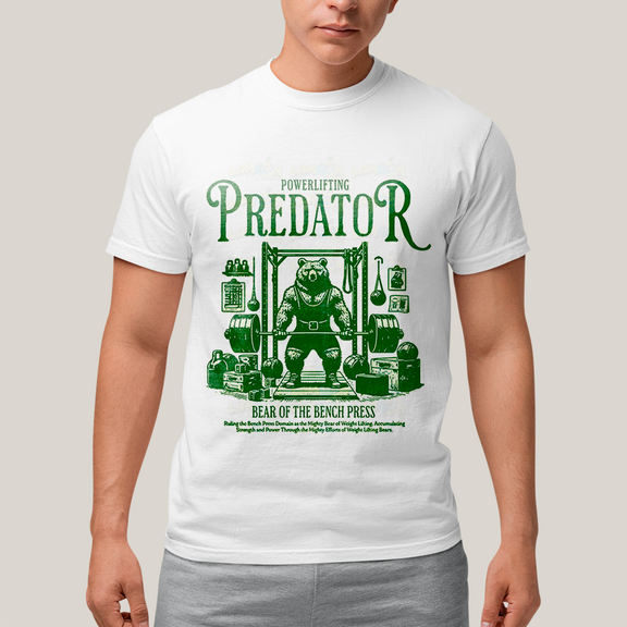 Camiseta Algodão Unissex T shirt Powerlifting Predator Urso Maromba Academia