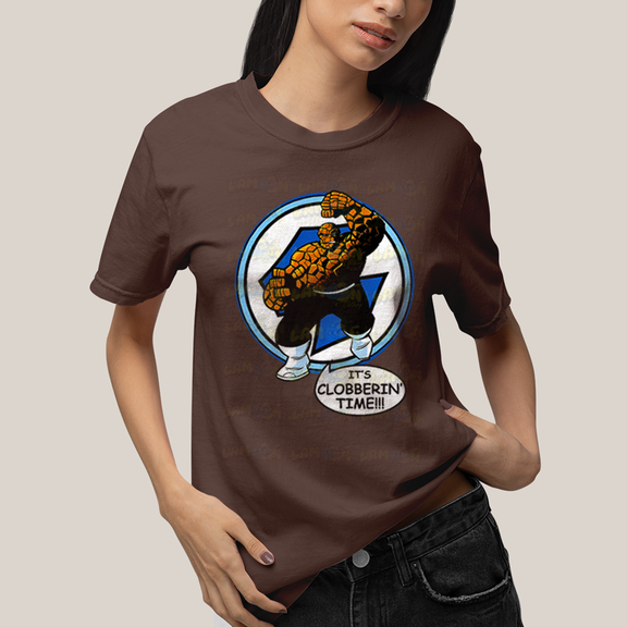 Camiseta Algodão Unissex T shirt Quarteto Fantástico O Coisa Tá na Hora do Pau