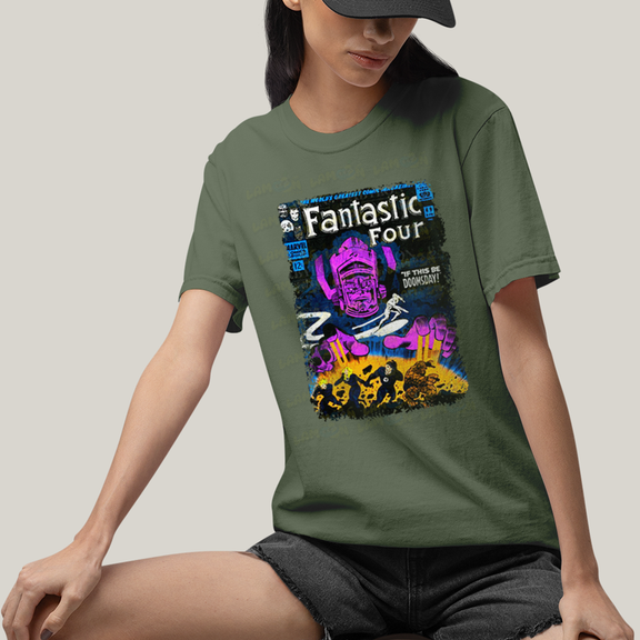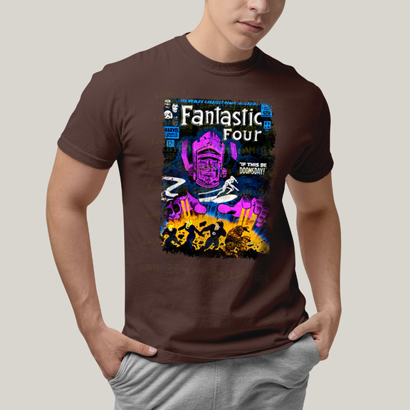 Camiseta Algodão Unissex T shirt Quarteto Fantástico vs Galactus Capa de HQ