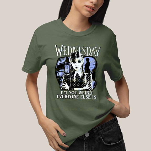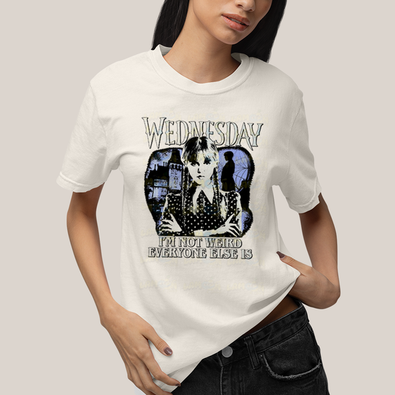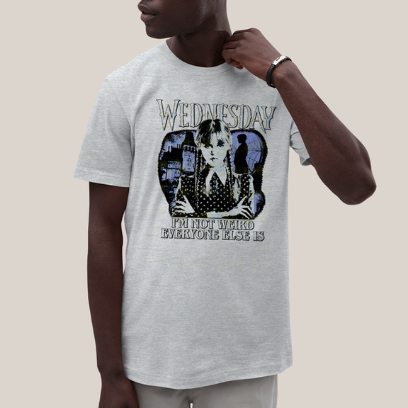 Camiseta Algodão Unissex T shirt Wandinha Wednesday Eu Não Sou Estranho, Todo Mundo é