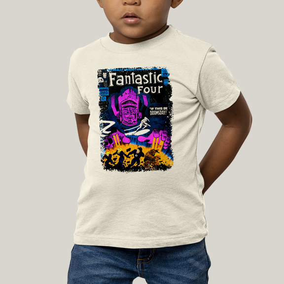 Camiseta Infantil Algodão Unissex T shirt Quarteto Fantástico vs Galactus Capa de HQ
