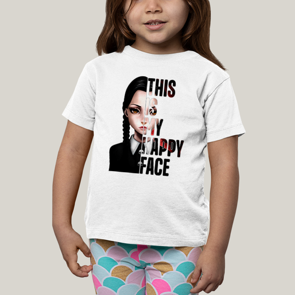 Camiseta Infantil Algodão Unissex T shirt Wandinha Essa é Minha Cara Feliz