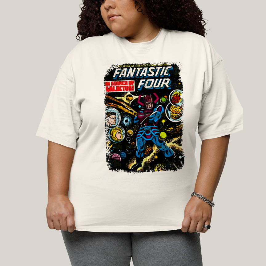 Camiseta Plus Size Algodão Unissex T shirt Quarteto Fantástico & Galactus Capa HQ