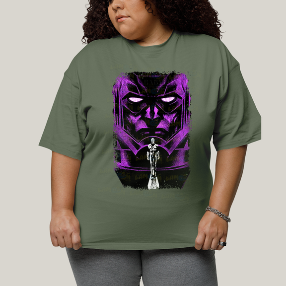 Camiseta Plus Size Algodão Unissex T shirt Quarteto Fantástico Galactus & Surfista Prateado