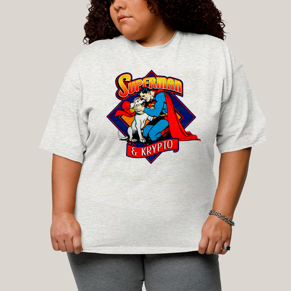 Camiseta Plus Size Algodão Unissex T shirt Superman & Krypto Supercão Abraço