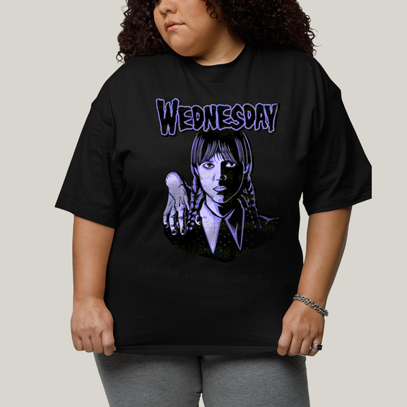 Camiseta Plus Size Algodão Unissex T shirt Wandinha Roxo Wednesday