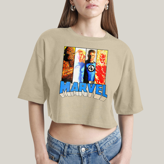Cropped Oversized Algodão Unissex T shirt Quarteto Fantástico Marvel Retrô