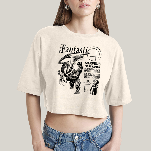 Cropped Oversized Algodão Unissex T shirt The Fantastic Four First Family