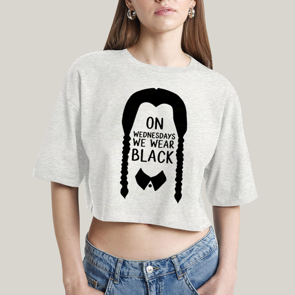 Cropped Oversized Algodão Unissex T shirt Wandinha Na Quarta Feira Usamos Preto