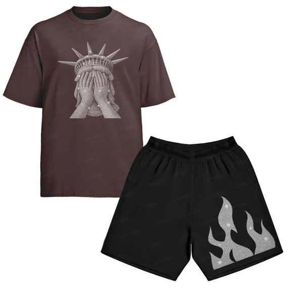 Kit Camiseta e Bermuda Tactel Estatua da Liberdade