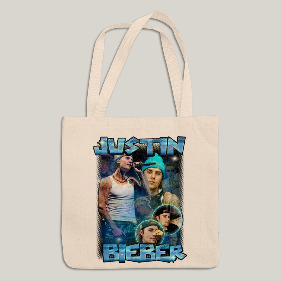 Sacola Ecobag Bolsa 38X40 Algodão Cru Graphic Justin Bieber King