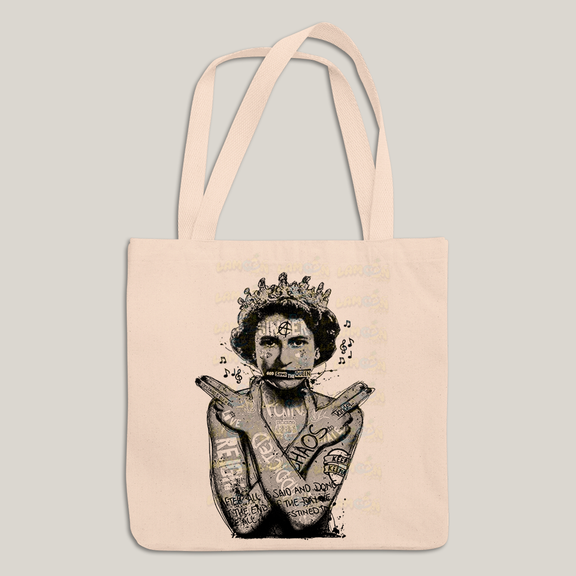 Sacola Ecobag Bolsa 38X40 Algodão-  Sex Pistols God Save The Queen preto e branco
