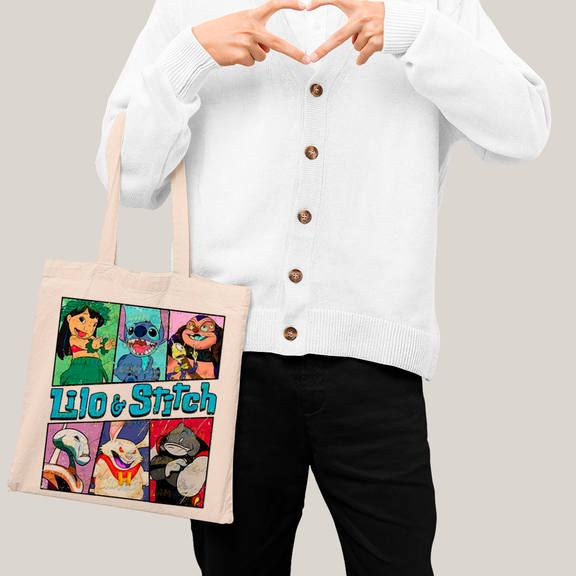 Sacola Ecobag Bolsa 38X40 Algodão- Lilo & Stitch Alienigenas